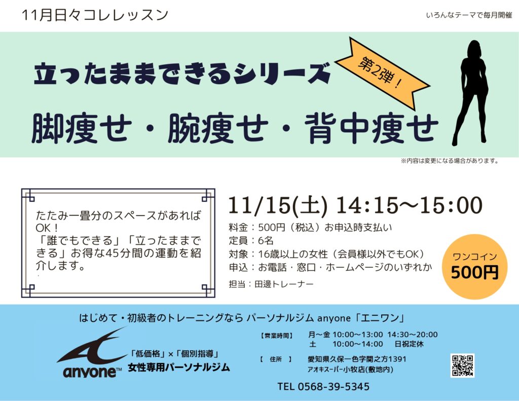 『立ったままできる!脚痩せ・腕痩せ・背中痩せ』をテーマにしました。