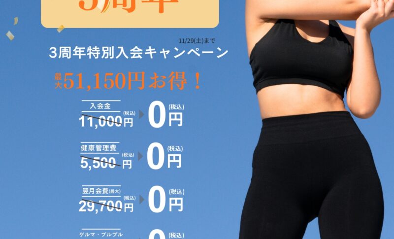 そんな11月。実はパーソナルジムanyoneは3周年を迎えました!!