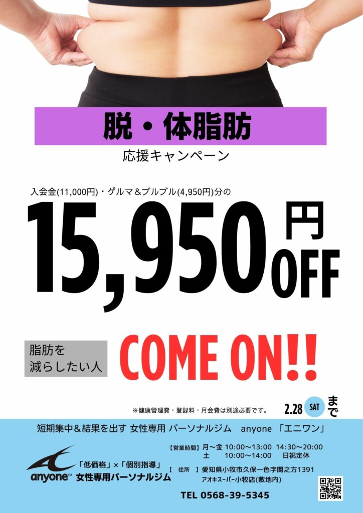 脱・体脂肪応援入会キャンペーンの詳細はこちらからでもご覧いただけます。