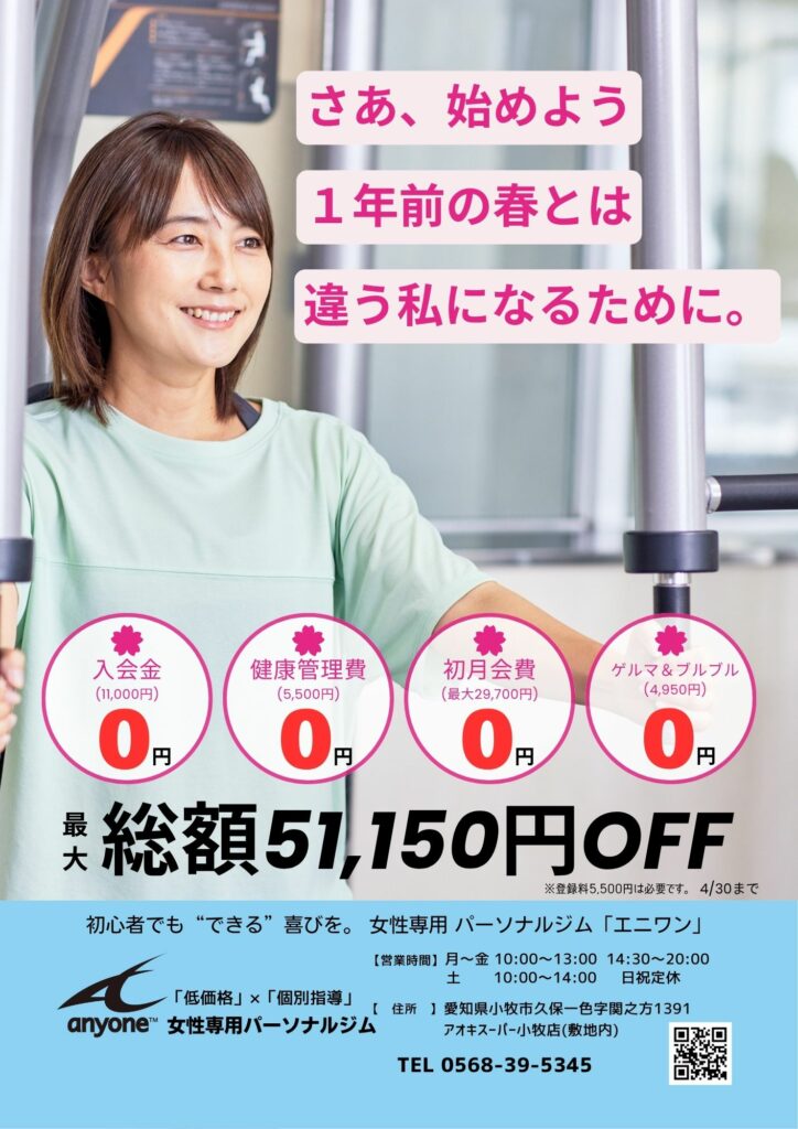 そんな4月はなんと51,150円もお得に入会いただけます!チャンスは4月だけなので「まずやってみようかな」と気軽な気持ちで始めましょう♪