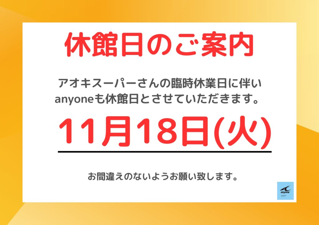 いつも、パーソナルジムanyoneをご利用いただきありがとうございます。