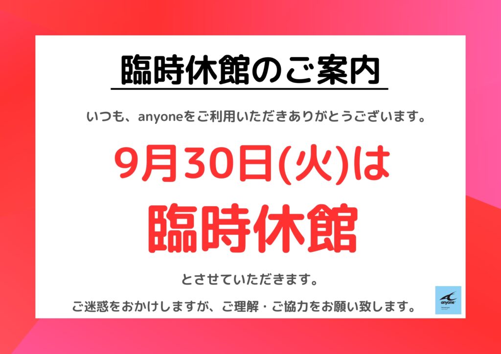 来たる9月30日(火)を臨時休館日とさせていただきますので、ご理解のほどよろしくお願い致します。